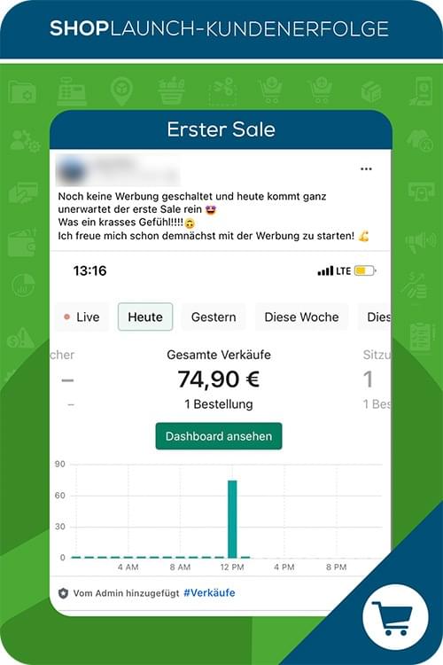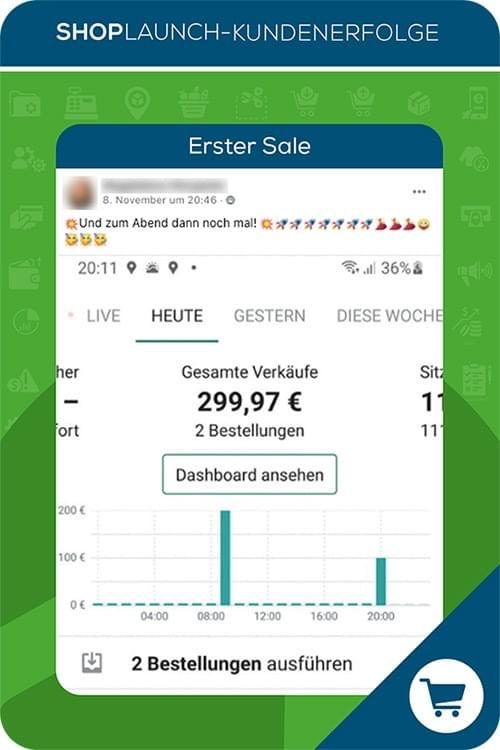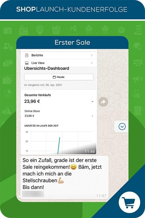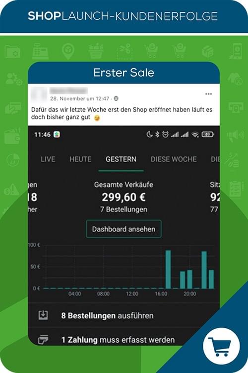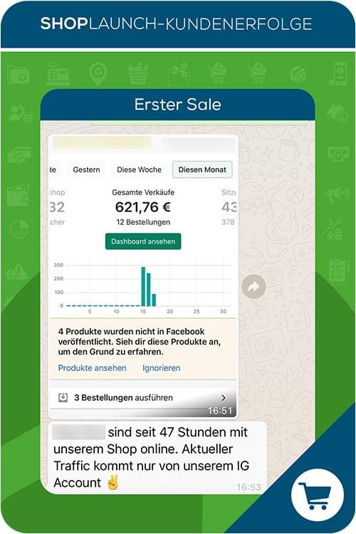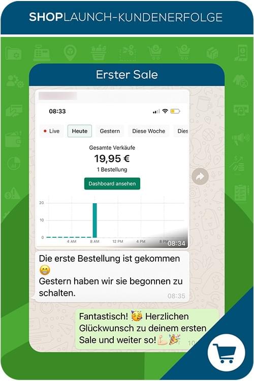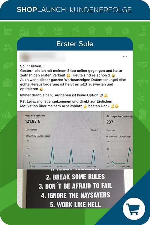 Im Normalfall solltest du nach den ersten 6-8 Wochen schon die ersten Umsätze mit deinem Onlineshop generieren. Teilnehmer, die das schaffen, erzielen dann im Durchschnitt nach 12 Wochen ihren ersten 5-stelligen Monatsumsatz. Natürlich gibt es immer wieder Ausreißer, so haben wir auch einige Kunden, die schon nach 12-15 Wochen 6-stellige Umsätze erzielt haben. Entscheidende Kriterien für deine Ergebnisse sind natürlich deine Einsatzbereitschaft, dein Mindset und die Geschwindigkeit, mit der du die Inhalte aus dem Coaching umsetzt.